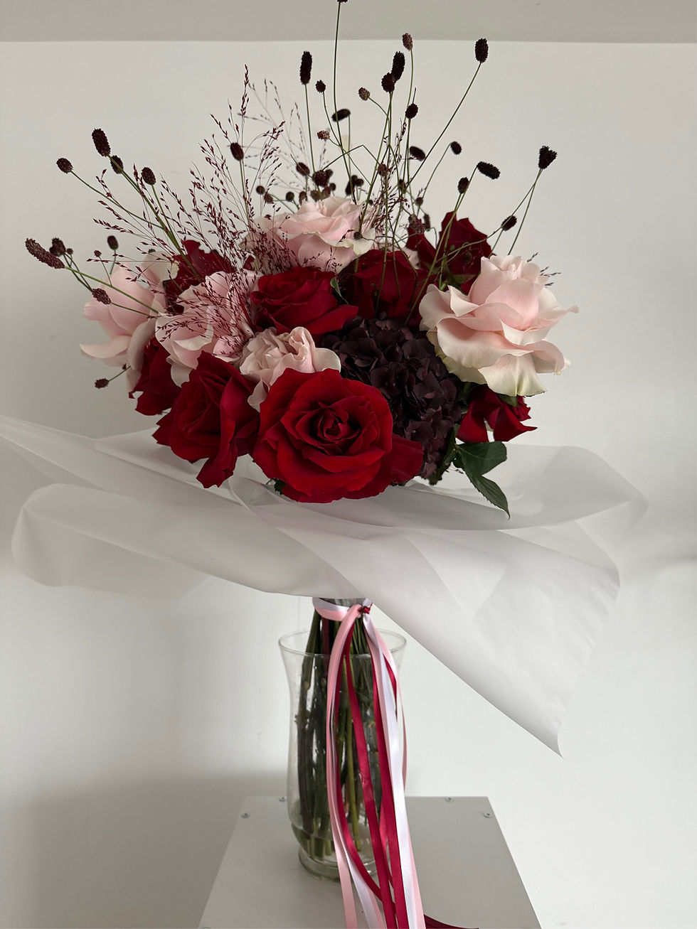 Featuring pale pink roses, burgundy hydrangea and red roses A feminine bouquet for special someone 6 pink roses, 12 reflexed red roses 2 hydrangeas Valentines red and pink£120.00PriceSHIPPINGCard message (optional)0/500Quantity*Add To CartBuy NowDeliveryPlease specify delivery day 13th or 14th feb
